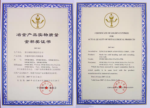 Wire SWRCH18A...SWRCH35K for cold forging awarded the Gold Cup Prize of Metallurgy products.