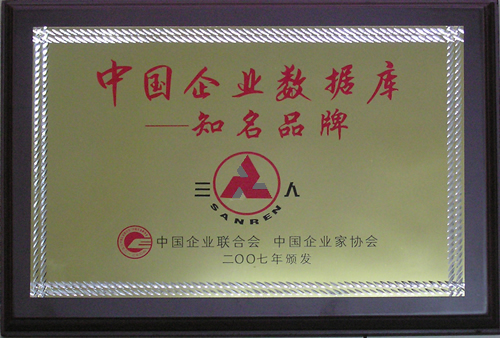 The Three Person brand was selected in The Enterprises Datebase of China as the Famous Brand of China.