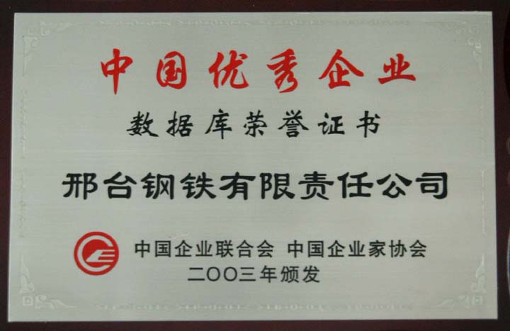 Xingtai Steel was officially chosen by China Excellent Enterprise Database.