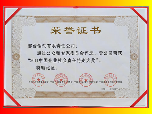 2011年6月17日,邢鋼被評選為“2011中國企業(yè)社會責(zé)任特別大獎”。