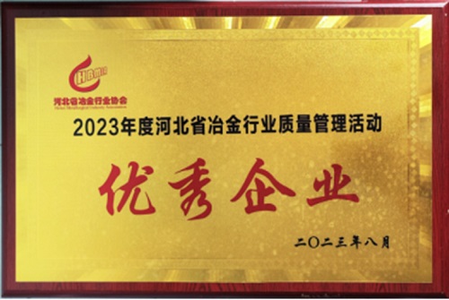2023年8月,邢鋼被評為“2023年度河北省冶金行業(yè)質(zhì)量管理活動優(yōu)秀企業(yè)”。