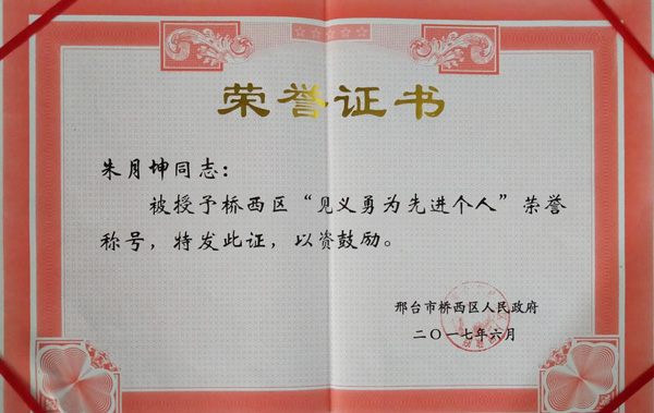 邢鋼質(zhì)量控制部朱月坤被授予邢臺市優(yōu)秀退役軍人榮譽(yù)稱號