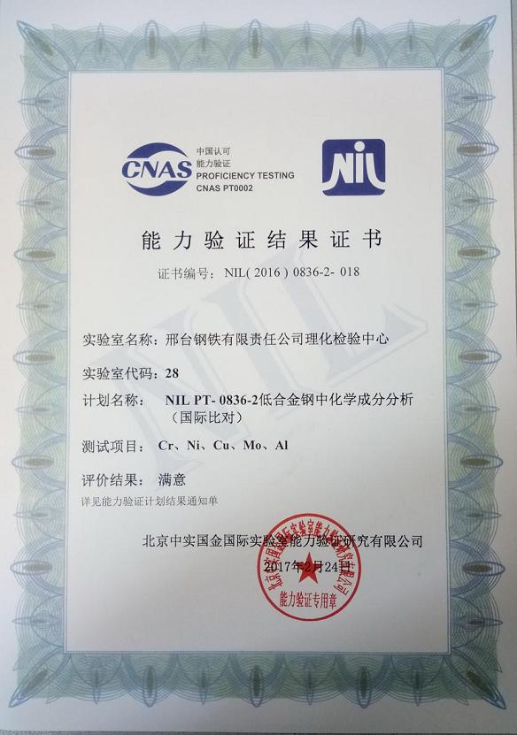 邢鋼理化檢驗中心9項能力驗證全部通過