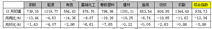 資料來(lái)源:上海鋼聯(lián)云終端(行業(yè)指數(shù)初值根據(jù)12月1日至18日的數(shù)據(jù)預(yù)估)