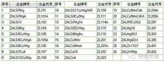 鋁合金按照加工方法的不同分為兩大類,即壓力加工鋁合金和鑄造鋁合金(分別以YL和ZL表示)。在鑄造鋁合金中又依主要加入的合金元素的不同而分為四個(gè)系列,即鑄造鋁硅合金、造鋁銅合金、鑄造鋁鎂合金和鑄造鉛鋅合金(分別以 ZL1X X,ZL2 X X,ZL3 X X和ZL4 X X表示),在每個(gè)系列中又按照化學(xué)成分及性能的不同而分為若干牌號。表3中列出了鑄造鋁合金國家標(biāo)準(zhǔn)所包括的幾種鋁合金的牌號。