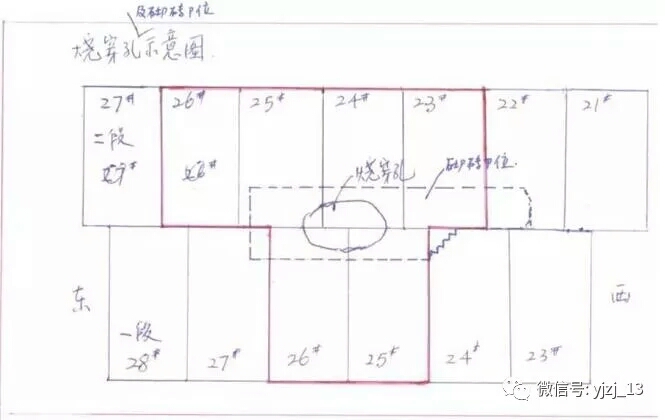燒穿位置在3-4段冷卻壁之間,32-33號風(fēng)口下方,距離1號鐵口左側(cè)1800㎜左右。偏下方800 ㎜。爐缸無冷卻壁,冷卻方式為爐皮外加冷卻水套,總水量450立。