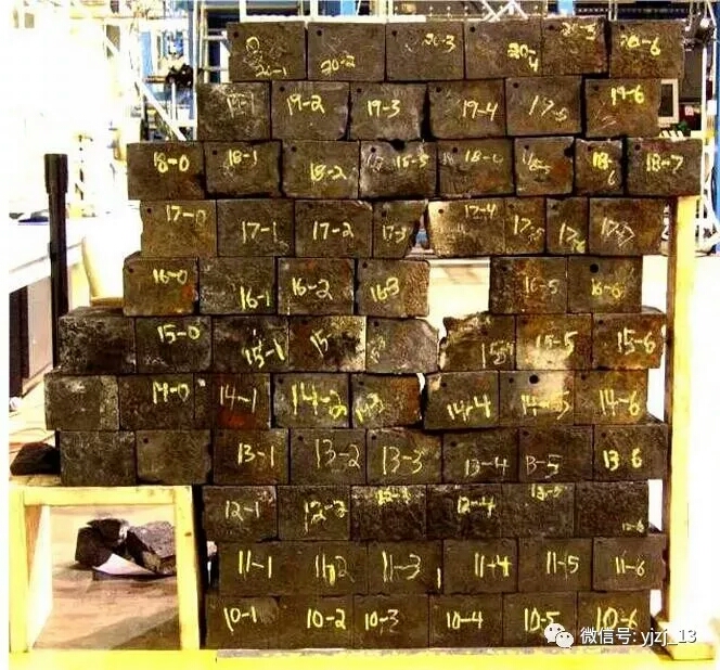 1.碳磚縫隙達70mm,環(huán)碳90mm環(huán)裂,后部900mm碎裂,碳磚在施工過程堆在火車站就嚴重變形,鉆鐵都說明碳磚質(zhì)量過低(收縮與未焙燒)。