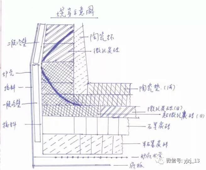 (4)炭磚與冷卻壁間為碳素搗料,60mm;