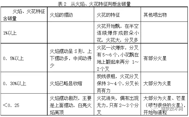 對于火花的研究,1804年起英國的門生?塔斯克斯(Manson Tacpues)、1929年給特(T.D.Gat)及日本“火花檢查法研究委員會”都曾從鋼品種檢查的角度系統(tǒng)研究了如何根據(jù)砂輪上磨出來的火花特征去鑒定鋼的品種。對于在煉鋼過程中如何用視覺掌握火花的方法的研究是極其貧乏的。看火花時感知的對象是運動物體,即火花。要看它分叉的數(shù)量,分叉是一種形狀變化。火花分叉之所以難以看到的原因是由其本身及四周的一些因素決定的,如爐口噴出來的碳花體積很小,很密,流動速度很快,同時白色碳花又在白亮火焰的背景上,因此很難識別碳花,而碳花分叉更難辨別,因為碳花從爐口噴出后只在半空中開始分叉,而且分叉的時間極短促,所以要想觀察到碳花的分叉,就需要用視覺追蹤,把碳花作為一個運動物體的運動軌跡。此外要掌握碳花運動速度,因為碳花在分叉以前要降低速度,在半空停留一下隨后分叉,所以還要掌握碳花在空中分叉的位置。碳花在半空停留時就注意觀察才能看到碳花分叉的數(shù)目。掌握碳花運動的規(guī)律,由時間空間定位來觀察碳花分叉情況,在實踐中證明了是個好方法。在剛開始學習看碳花時,由于碳花很密,可以先從碳花最稀的地方選擇地找一個來觀察,這樣容易觀察到它的特征,這就是選擇性的部分觀察,學會部分觀察后才可進行全部觀察。有的煉鋼工沒有掌握這一認識活動的規(guī)律,就始終不能看到碳花的分叉,目前在煉鋼工中不能判斷碳花的不乏其人。