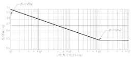 對很多金屬已經(jīng)進行了大量的疲勞試驗。從這些試驗中,已經(jīng)開發(fā)出拉伸強度和循環(huán)次數(shù)的曲線圖。鍛鋼的一個例子如圖1所示。 在這個對數(shù)記錄圖上的垂直坐標標示出了施加的應力與鋼的極限拉應力“SU”的比例,而橫坐標是應力循環(huán)至失效的次數(shù)。SN曲線的左側(cè)表明,在高循環(huán)載荷下的鋼件產(chǎn)生的應力占了拉伸強度的較大比例,在一定數(shù)量的循環(huán)之后就會失效。SN曲線的右側(cè)表明,如果循環(huán)應力保持在可定義的極限以下,則部件將具有無限的壽命。曲線還告訴我們,如果一個鋼件只有一個加載周期,其應力大于其拉伸強度,則該鋼件將失效(如當一個小螺栓如果擰緊時斷開)。如果施加的應力是拉伸強度的90%或更多,它也會在小于一千個周期內(nèi)失效。但如果應力保持在抗拉強度的一半以下,它就不會疲勞。