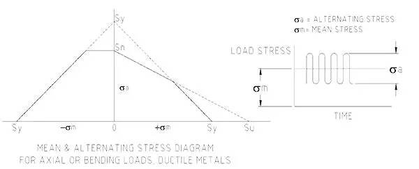 知道一部分將受到波動負載需要設(shè)計師設(shè)計的部分,為該條件。使用已知的極限拉伸應力和屈服應力(金屬首先開始永久變形的應力,約80~90%的拉伸應力),設(shè)計者構(gòu)造一個應力限制包絡,如圖2所示。然后設(shè)計該部件以使施加到其上的循環(huán)載荷為控制在包絡內(nèi)的應力。