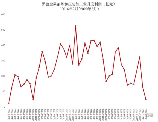 據(jù)此計算,去年3月份黑色金屬冶煉和壓延加工業(yè)利潤為207.5億元, 今年3月為50.1億元,比去年同期減少76%,已基本接近2016年初供給側(cè)結(jié)構性改革開始時的水平(如下圖)。