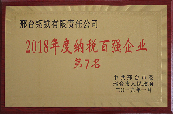 邢鋼入圍邢臺(tái)市 2018年度納稅百強(qiáng)企業(yè)榜