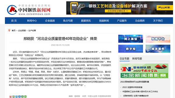 邢鋼獲“河北企業(yè)質(zhì)量管理40年功勛企業(yè)”殊榮