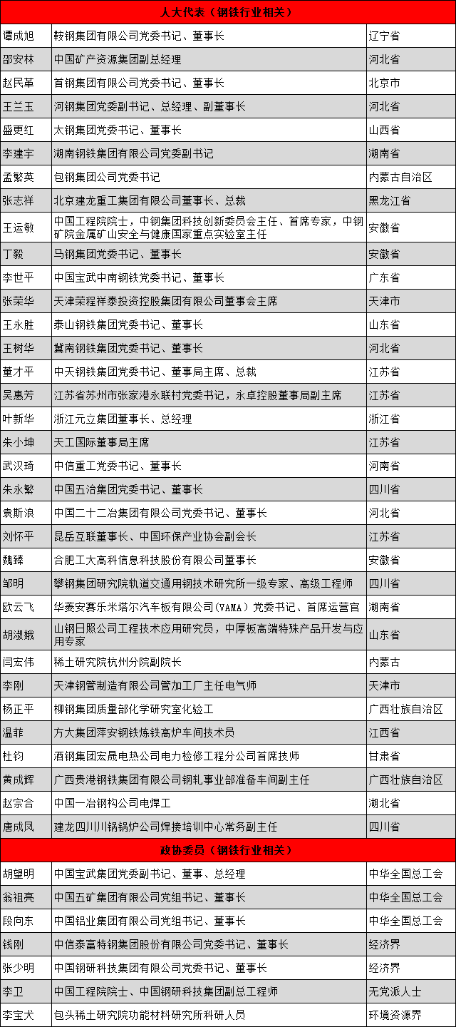 三月春風(fēng)吹神州,又是一年兩會時。今年的兩會,正值二十大的開局之年,也恰逢換屆之年,對新階段全面推進(jìn)中國式現(xiàn)代化發(fā)展有著重要的導(dǎo)向作用。而在新一屆的人大代表中,依然有一批來自各領(lǐng)域、各行業(yè)、各崗位的代表和委員們?yōu)樾袠I(yè)發(fā)聲,為民眾請愿。在這其中,不乏一些鋼鐵行業(yè)的委員和代表。我們來看看他們都帶來了哪些建議和提案吧!