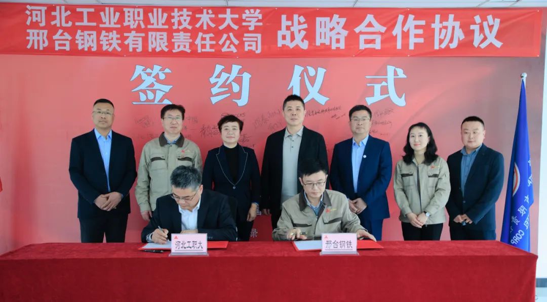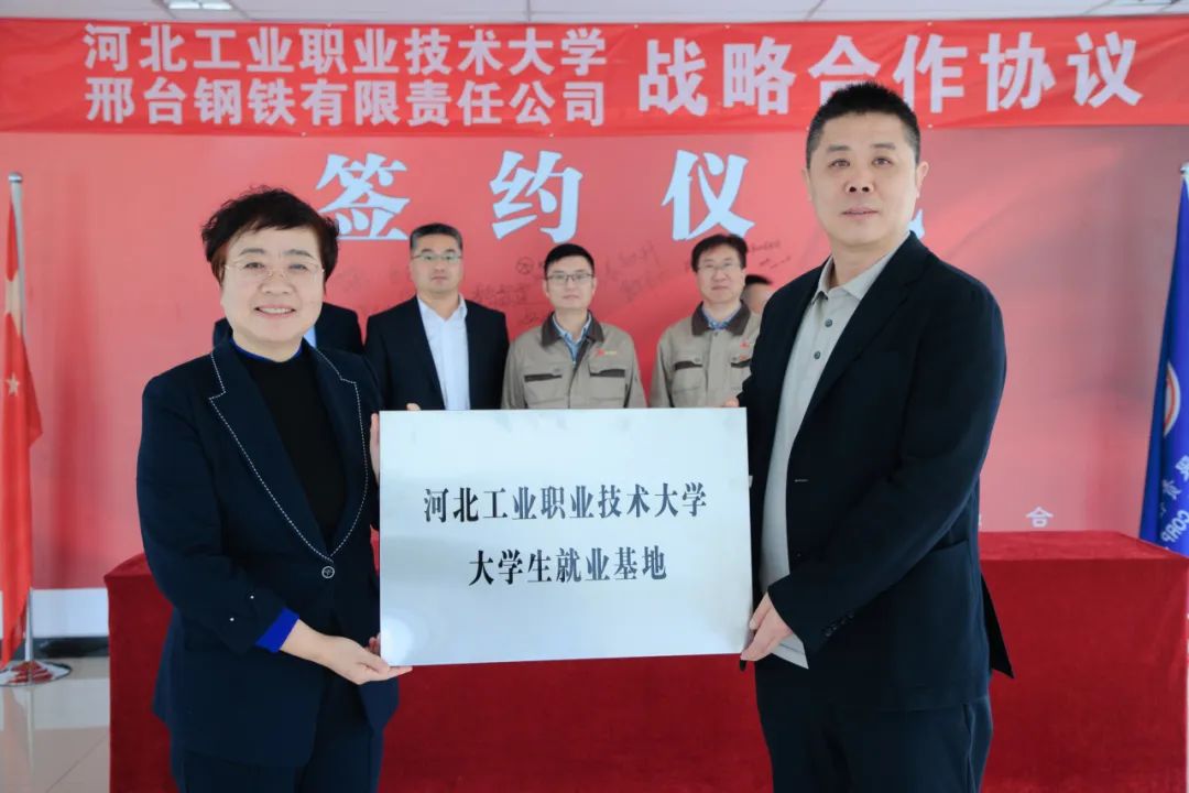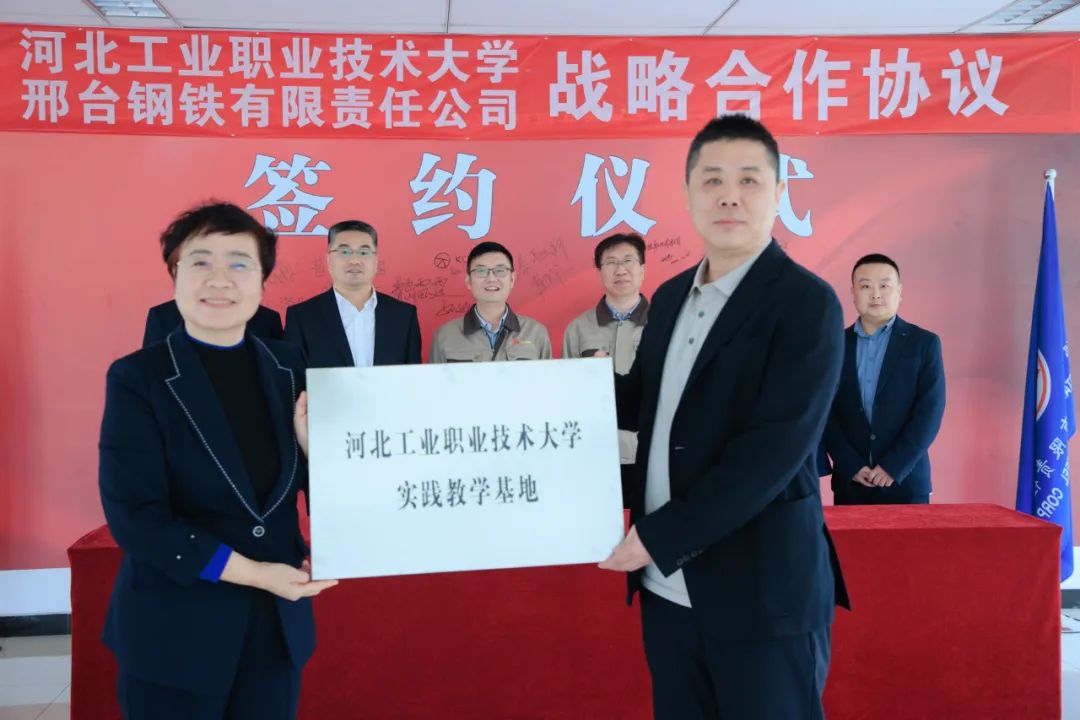 在與會(huì)人員的共同見證下,雙方代表簽訂了校企合作協(xié)議。還分別進(jìn)行了“河北工業(yè)職業(yè)技術(shù)大學(xué)大學(xué)生就業(yè)基地”、“河北工業(yè)職業(yè)技術(shù)大學(xué)實(shí)踐教學(xué)基地”、“邢臺(tái)鋼鐵有限責(zé)任公司人力資源培訓(xùn)基地”授牌互認(rèn)。
