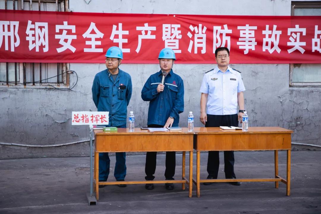 上午8點(diǎn)55分,邢鋼副總經(jīng)理李紅超宣布應(yīng)急演練正式開始。9時,中控室氣體檢測報警設(shè)施顯示5#探頭報警,粗苯工檢查發(fā)現(xiàn)粗苯罐放空閥外側(cè)法門里側(cè)法蘭開裂,發(fā)生粗苯泄漏,隨即報告值班廠長,焦化廠粗苯儲罐事故專項應(yīng)急預(yù)案響應(yīng)啟動。警報一響,應(yīng)急指揮部迅速成立,現(xiàn)場所有人員在指揮長的指導(dǎo)下,按照應(yīng)急預(yù)案有序開展了處置、救援等應(yīng)急程序。線材廠、煉鋼廠、煉鐵廠、質(zhì)控部等單位組織人員到現(xiàn)場觀摩學(xué)習(xí)。
