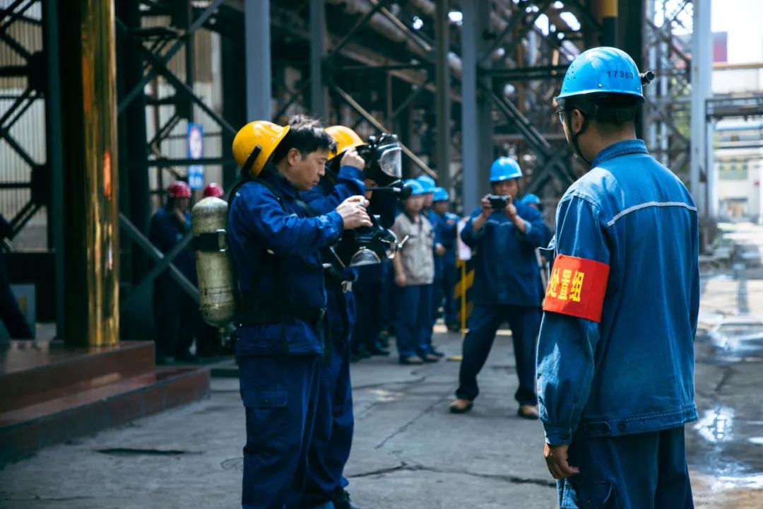 隨后,參會(huì)人員一起現(xiàn)場觀摩了邢鋼高溫熔融金屬爆噴事故現(xiàn)場應(yīng)急處置演練。本次演練,模擬煉鋼廠加料跨天車向2#轉(zhuǎn)爐加廢鋼時(shí)發(fā)生爆噴為背景,演示了事故上報(bào)、安全疏散、預(yù)案啟動(dòng)、現(xiàn)場搶險(xiǎn)、應(yīng)急救援等環(huán)節(jié)。
