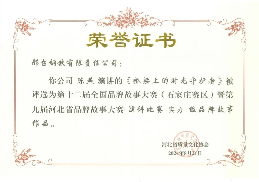 近日,由河北省質(zhì)量文化協(xié)會(huì)主辦的“第十二屆全國(guó)品牌故事大賽(石家莊賽區(qū))暨第九屆河北省品牌故事大賽”圓滿落下帷幕,邢鋼團(tuán)隊(duì)獲得多項(xiàng)殊榮。