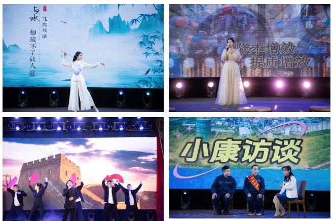 聯(lián)歡會在煉鐵廠震撼人心的《旗鼓飛揚》的鼓聲中拉開帷幕,煉鋼廠、線材廠、新翔公司等二級單位、子公司錄制的《邢鋼一線員工賀新春》視頻為聯(lián)歡會烘托出濃厚的節(jié)日氣氛。碳資產(chǎn)管理部蘆麗華、線材廠張嬌的一首《紅彤彤的春天》讓觀眾如沐春風,銷售公司田芳、張可等的動感現(xiàn)代舞《奔跑吧,兄弟!》又讓觀眾切身感受到市場營銷人員的拼搏、奉獻。焦化廠申學軍、閆俊萍等的《難忘的焦爐情懷》,以情境小品的形式,再現(xiàn)2#焦爐安全停爐的場景,重溫焦化人站好最后一班崗的敬業(yè)情懷;線材廠魏東的《步步高》,唱出了邢鋼人的激情與豪情。技術中心蔡永賓等的詩朗誦《攜手邢鋼,追夢邢鋼》,以新一代邢鋼人的視角,張揚青春,澎湃激情;煉鋼廠張康健、甄建軍的《想把我唱給你聽》、資金部趙嘉薏的舞蹈《青花瓷》、能源動力部董巖的《匆匆歲月細細地過》、新翔公司郭文杰、景雙輝等的歌伴舞《雪龍吟》展現(xiàn)了鋼鐵人的別樣情懷。晚會中的兩個小品——煉鐵廠的《考察》、煉鋼廠的《小康訪談》,在輕松詼諧的氣氛中,展示了廣大員工對新邢鋼美好未來的信心。邢鋼搬遷項目指揮部與綜合辦公室、線材廠帶來的詩朗誦《希冀,奮進,筑夢新邢鋼》,回顧了邢鋼搬遷項目的建設歷程,激勵全體員工以更加昂揚的斗志、更加飽滿的激情,投身到各自的崗位上,讓新邢鋼的旗幟,永遠在鋼鐵行業(yè)的巔峰飄揚!